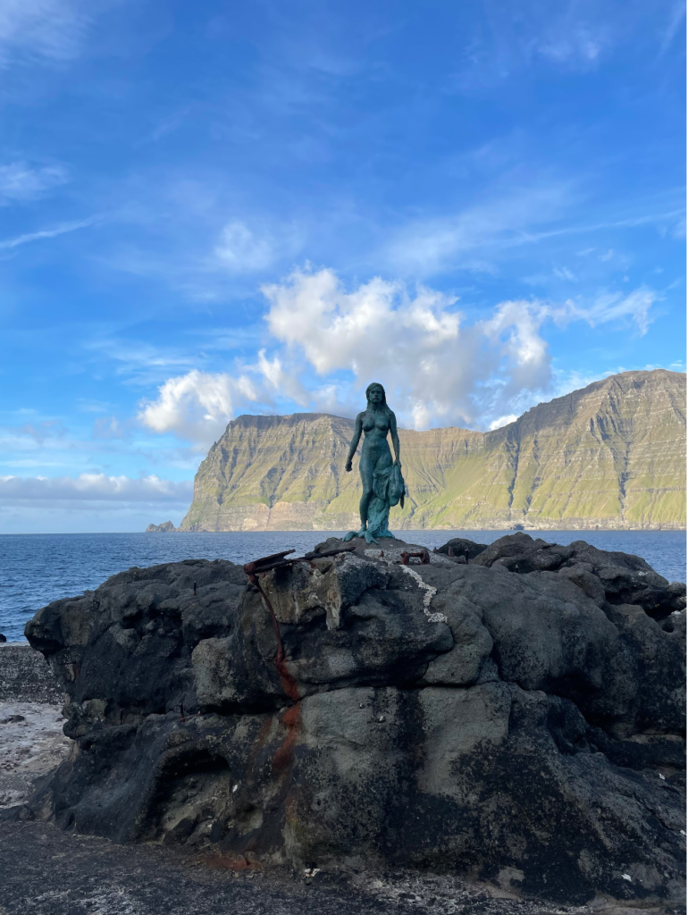 U Mikladaluru se nalazi statua žene-foke, posvećena staroj farskoj legendi o selkiji. Skulptura stoji okrenuta ka moru, na kamenoj plaži, i ostavlja snažan utisak. Ne moraš poznavati celu legendu da bi razumeo njenu poruku, dovoljno je da zastaneš pored statue i pogledaš ka okeanu. A ako želiš, možeš doći i čuti priču na licu mesta.
